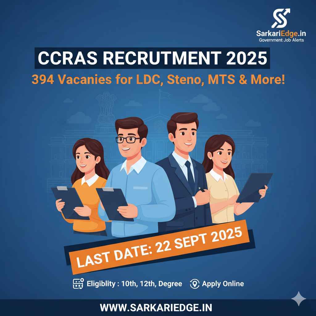 CCRAS Recruitment 2025: Bumper 394 Vacancies for LDC, Steno, MTS & More! Apply Now on Sarkariedge.in