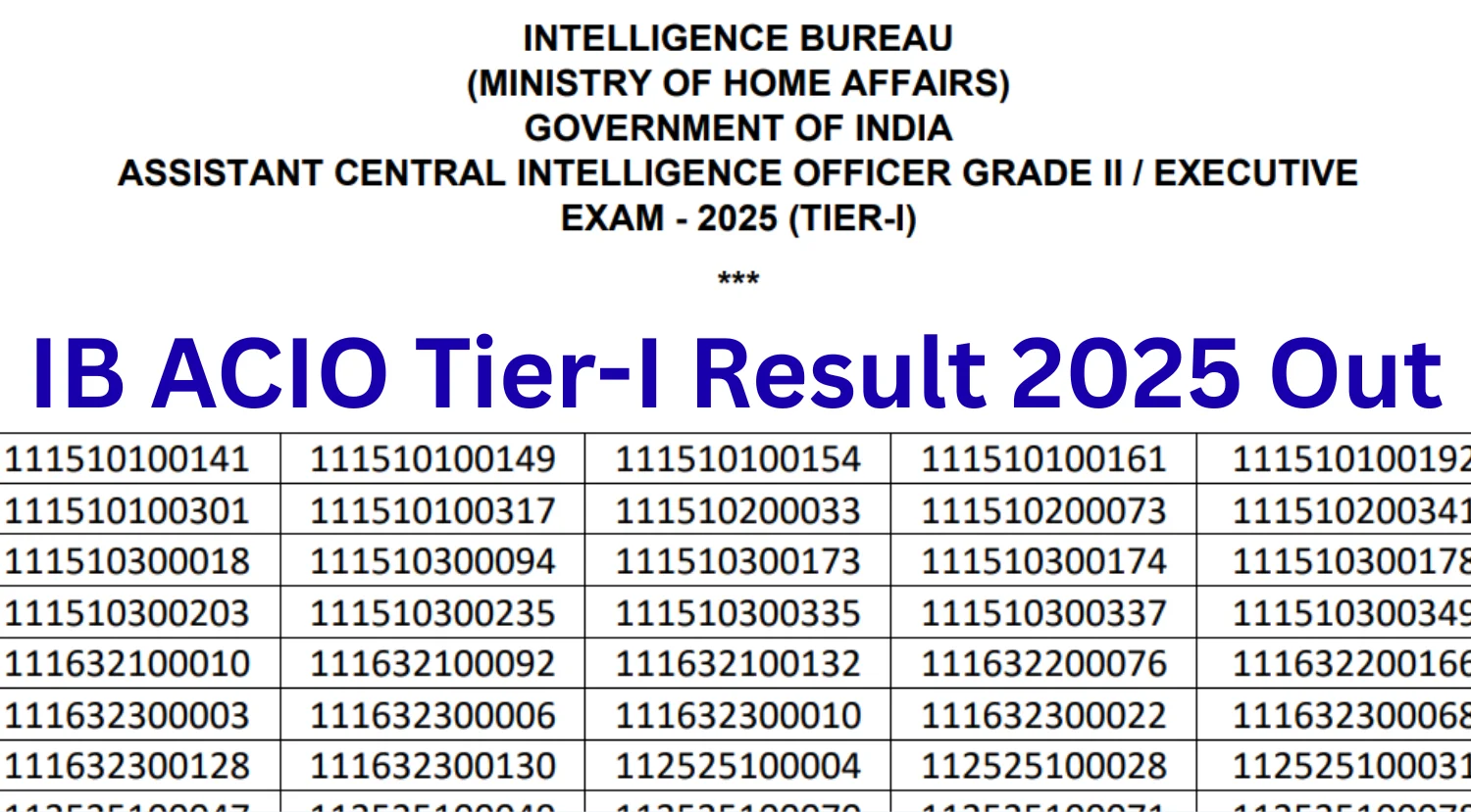 IB ACIO Tier-I Result 2025 Out — Download Merit List & Scorecard (MHA)