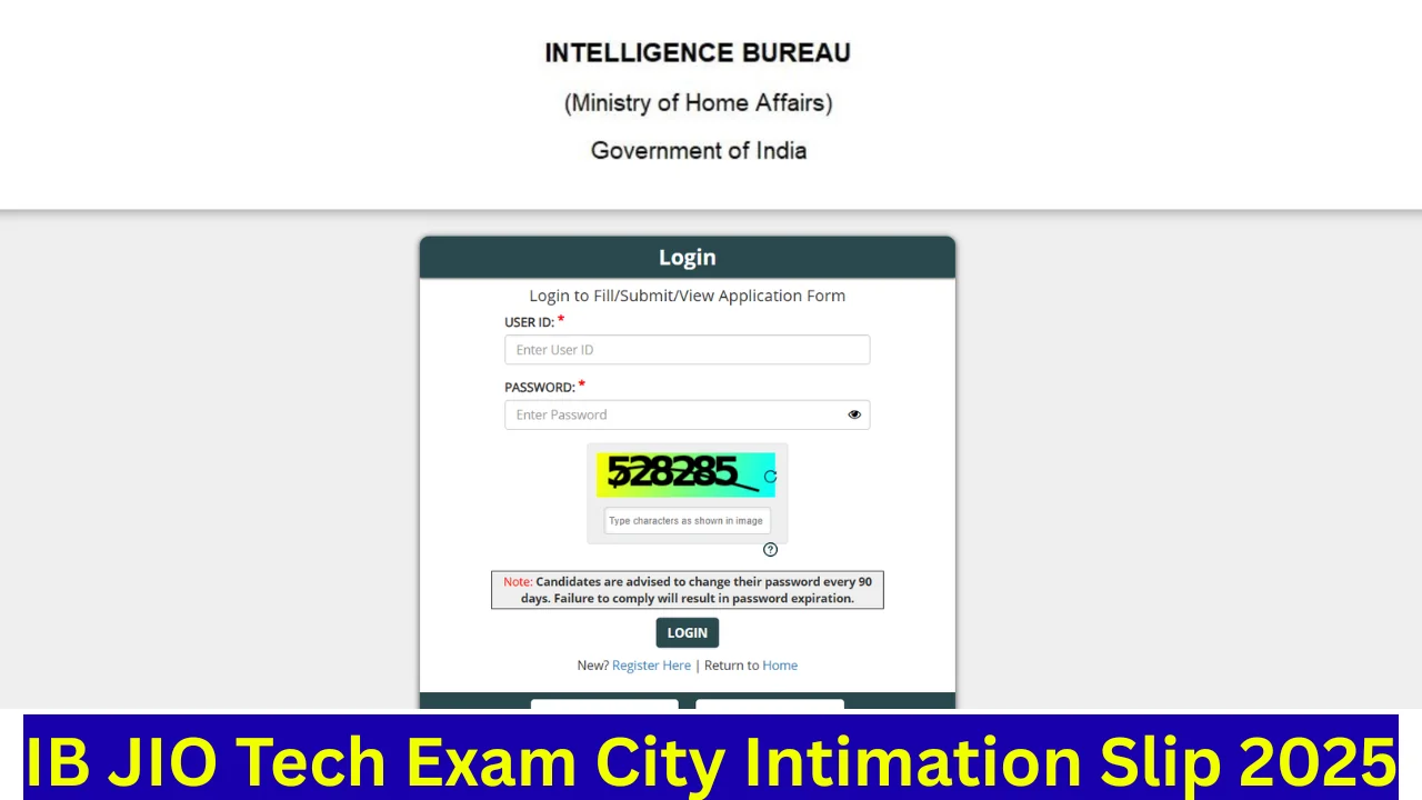 Check IB JIO Tech Exam City Intimation Slip 2025 (Link Active)