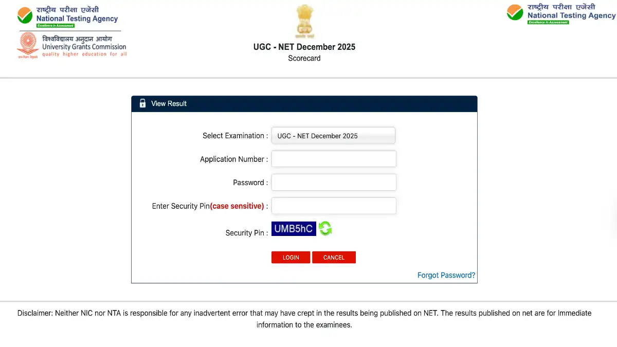 | National Testing Agency (NTA) has officially declared the UGC NET December Result 2026 on 04 February 2026. The UGC NET December 2025 examination was conducted from 31 December 2025 to 07 January 2026. Candidates who appeared in the examination can check their result using Application Number and Date of Birth through the official portal. |