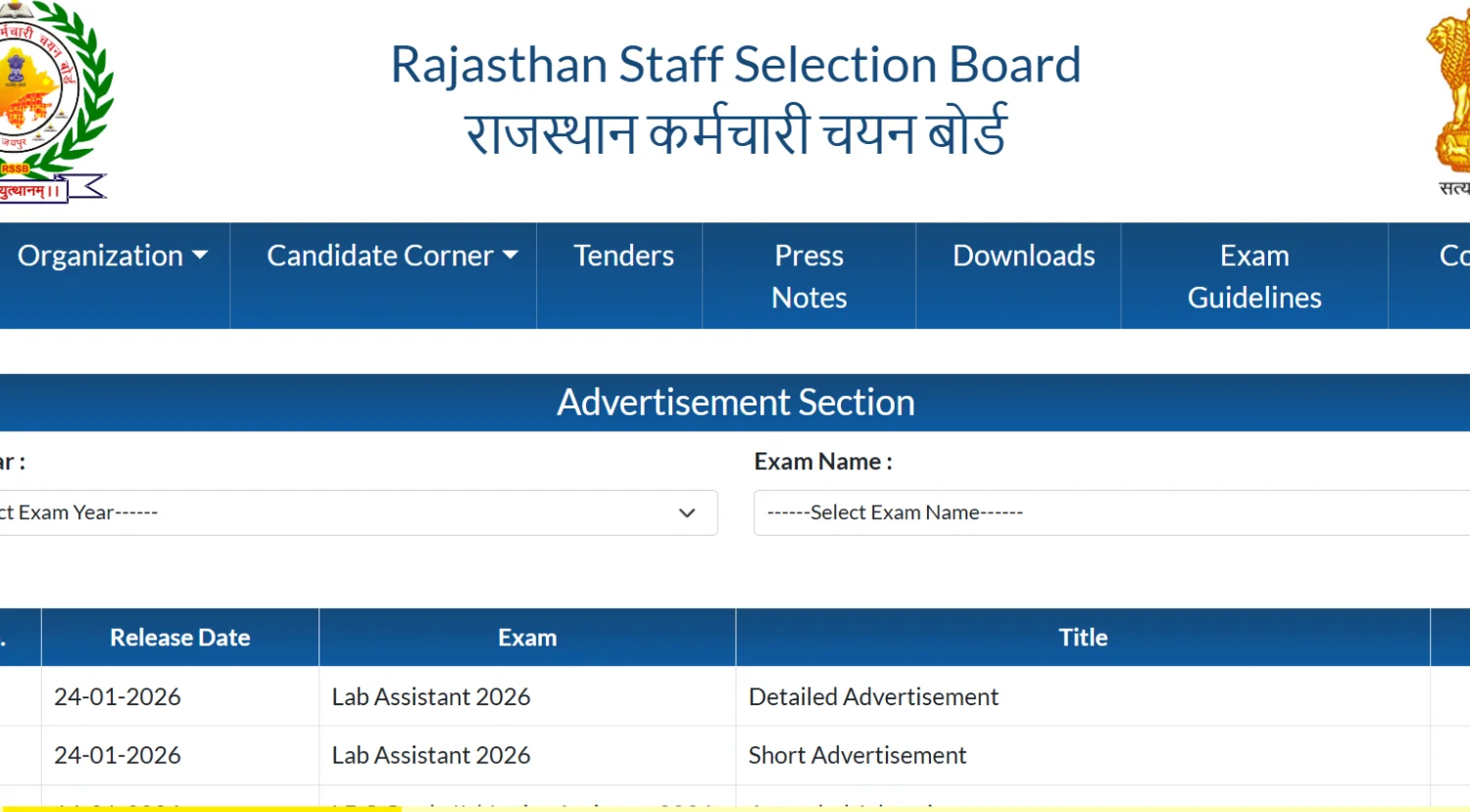 राजस्थान कर्मचारी चयन बोर्ड द्वारा राज्य के विभिन्न विभागों में प्रयोगशाला सहायक एवं कनिष्ठ प्रयोगशाला सहायक पदों के लिए कुल 804 रिक्तियों पर भर्ती हेतु आधिकारिक अधिसूचना जारी की गई है। योग्य उम्मीदवार निर्धारित तिथि के भीतर ऑनलाइन आवेदन कर सकते हैं।