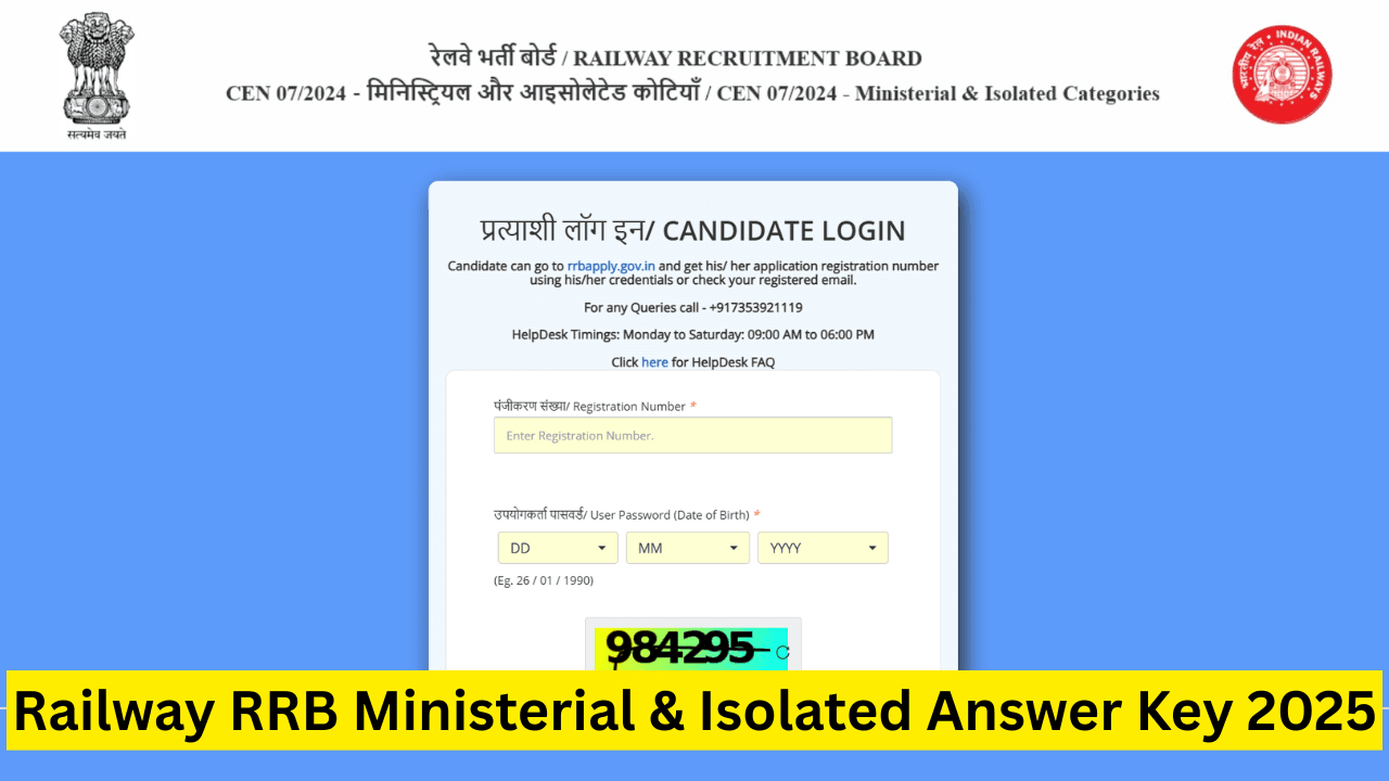 The RRB Ministerial & Isolated Answer Key 2025 for the CEN 07/2024 recruitment is a crucial document for all candidates. It allows you to verify the answers you marked in the CBT and estimate your potential score before the official results are declared. The RRB has released the provisional answer key, which provides transparency in the evaluation process. Candidates will also be given a specific window to challenge any answer they believe is incorrect.