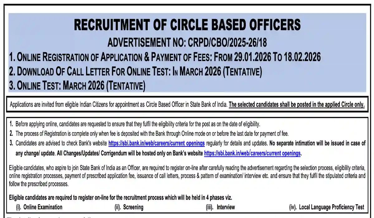SBI Circle Based Officers (CBO) Recruitment 2026