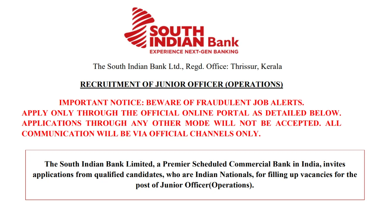 South Indian Bank Junior Officer Recruitment 2025: The South Indian Bank Limited has officially released a notification inviting applications for the post of Junior Officer (Operations) on a contract basis. This is an excellent opportunity for graduates with experience in the financial sector. The online application window is open from October 15, 2025, to October 22, 2025. Eligible candidates can submit their applications through the official website, www.southindianbank.com.