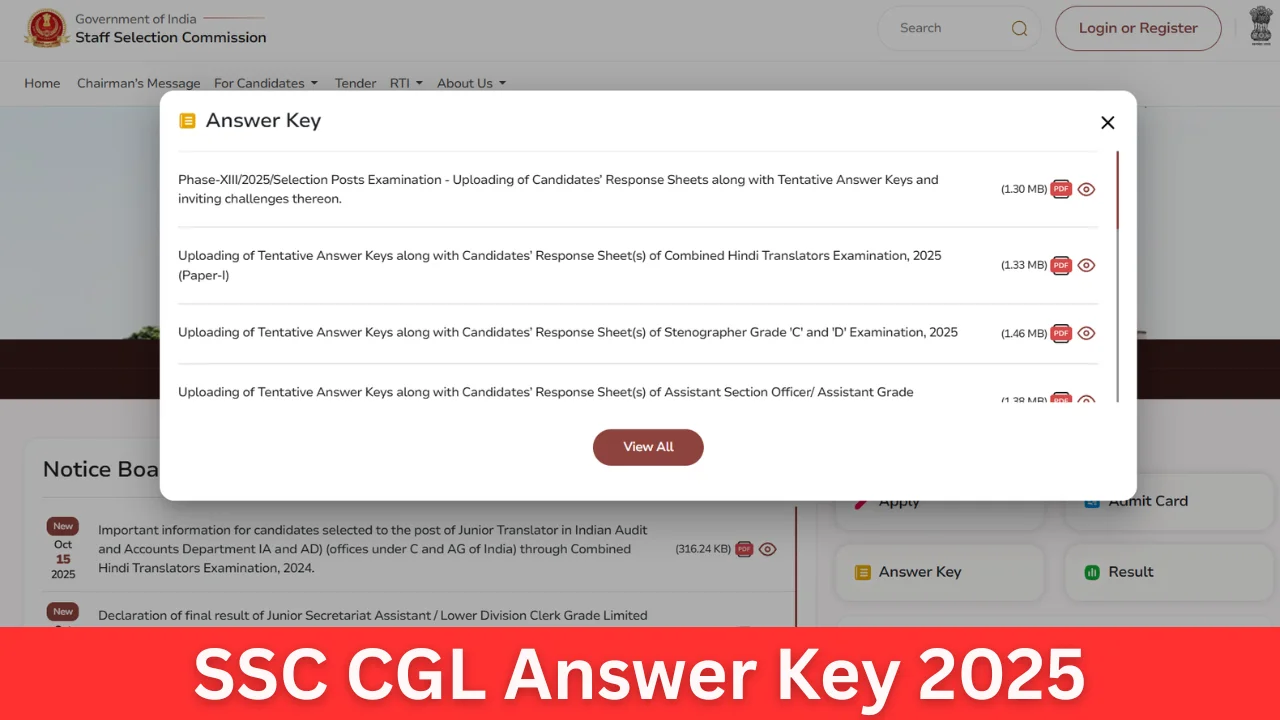 SSC CGL Answer Key 2025 Out Today : Download Official Response Sheet at ssc.gov.in