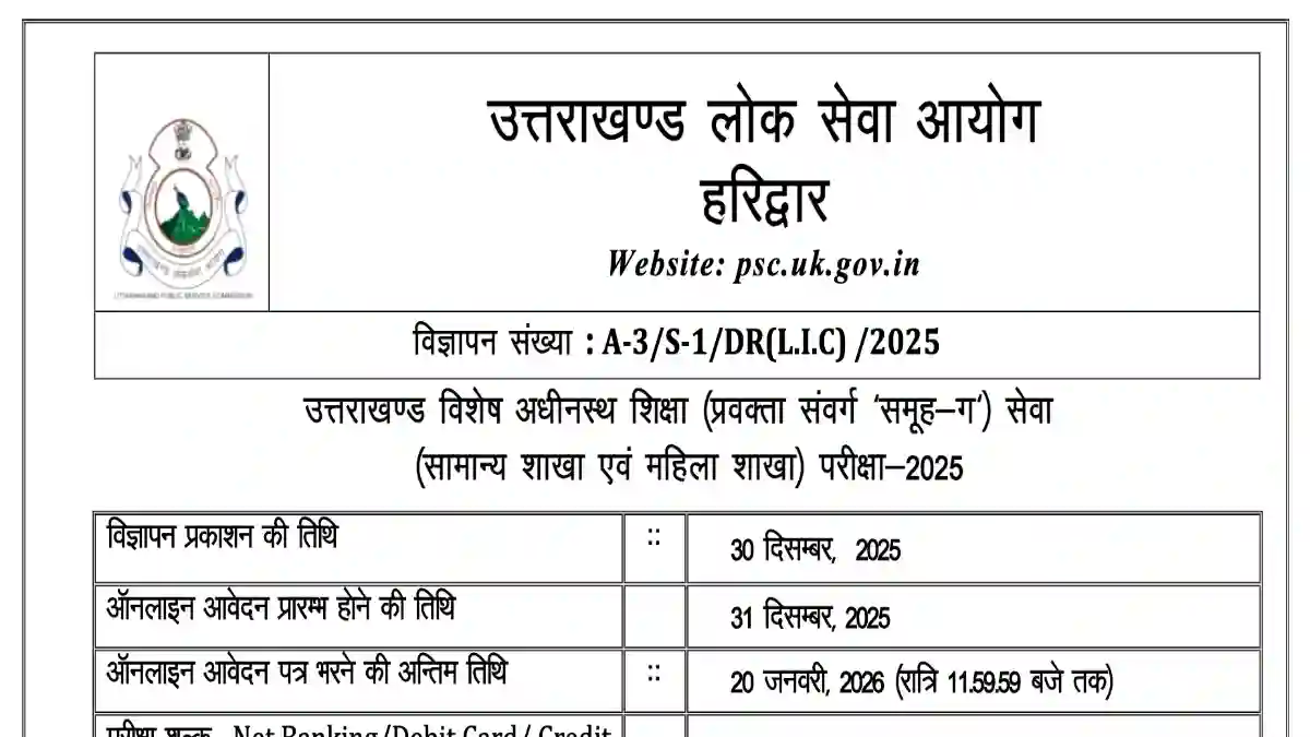 Age Limit : UKPSC Lecturer Recruitment 2025