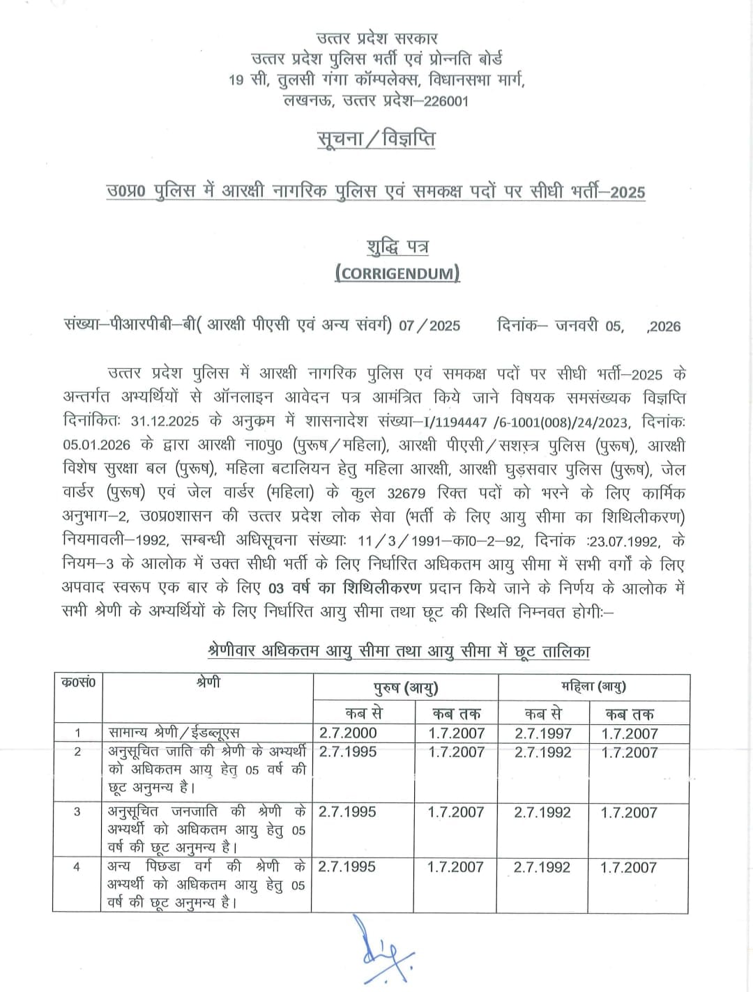 The corrigendum has been issued by the Uttar Pradesh Police Recruitment and Promotion Board, Lucknow, under approval of the competent authority. All dates, rules, and age limits mentioned above are taken directly from the officially released corrigendum document.