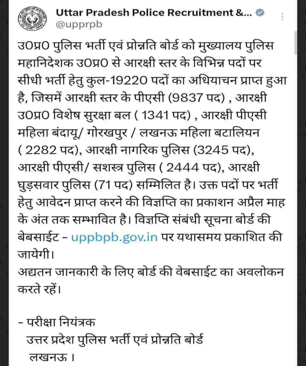 UP Police Constable Recruitment 2025 — Short Notification Out